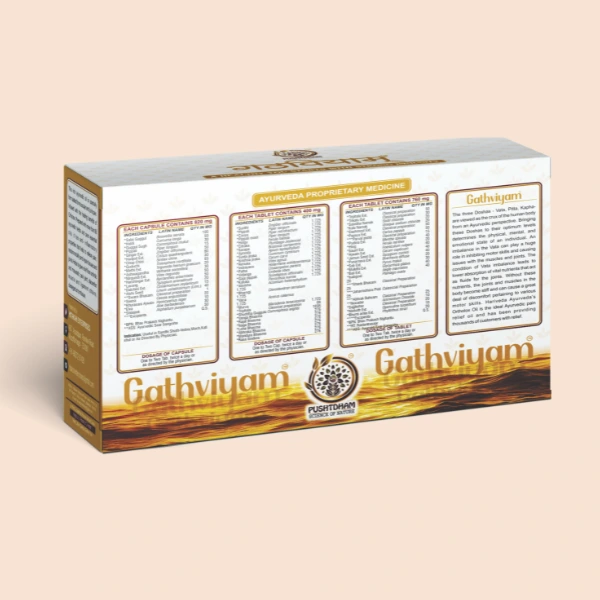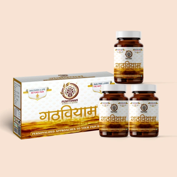 Gathviyam by Pushtdham is a natural Ayurvedic formula designed to relieve joint pain, muscular pain, and rheumatic discomfort. It supports tissue repair, restores mobility, and provides long-lasting relief from stiffness, ligament strain, and arthritic conditions.